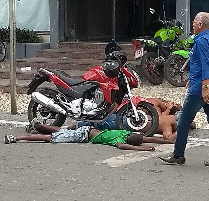 Felizmente, policiais chegaram e rendeu três dos assaltantes. Uma arma foi disparada mais ninguém ficou ferido.